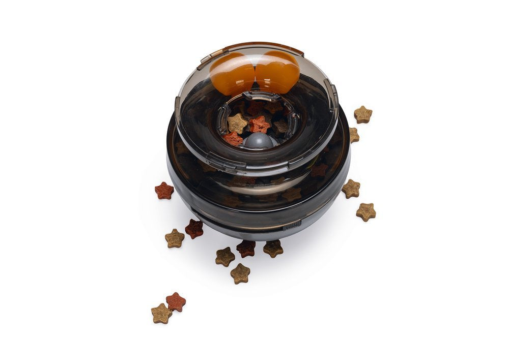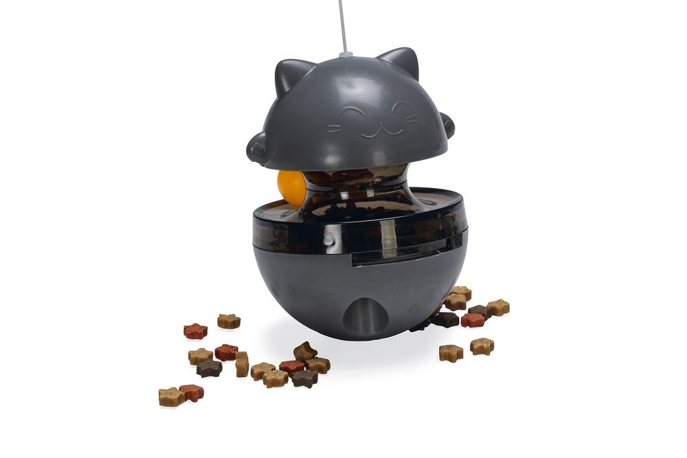 Kattenspeelgoed Wibol beschikt over verschillende speelelementen. Zo is de onderkant van het speeltje rond en verzwaard waardoor er een tuimeleffect ontstaat. Daarnaast heeft het speeltje een gleuf waarin twee speelballetjes verstopt zitten. Dit balletje zal door het wiebelen steeds naar een andere plek rollen, wanneer jouw kat begint te spelen. Het kattenspeeltje kan gevuld worden met overheerlijke kattensnacks! Hierdoor kun je jouw kat al spelenderwijs belonen. Door de bovenzijde los te draaien, kun je de snacks in het speeltje stoppen. Met de schuif aan de zijkant van het speeltje zet je vervolgens de vakjes aan de onderzijde open, waardoor er snacks uit kunnen vallen zodra het speeltje gaat bewegen. Om het speeltje nog leuker te maken, is er aan de bovenzijde van Wibol een lang stokje met een veer bevestigd.
