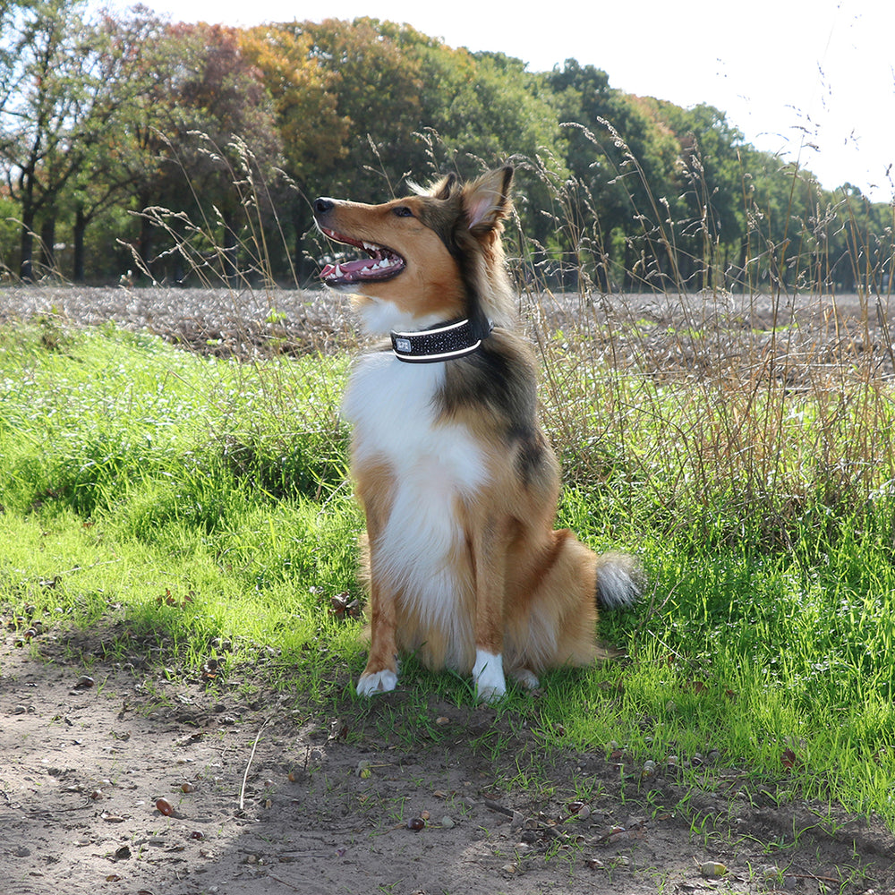- Een l-flexibele constructie waardoor de hond zijn bewegingsvrijheid behoudt om te kunnen spelen, eten, drinken, blaffen, etc.