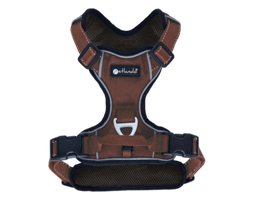 Het Petlando Outdoor harnas hondentuig is op vier plekken traploos verstelbaar, waardoor het een perfecte pasvorm genereert. Het harnas is licht in gewicht, heeft een hoog draagcomfort en ademt dankzij het Mesh materiaal. Het harnas heeft een lichtgewicht aluminium bevestiging D-ring voor de lijn, zowel op de rugzijde, als aan de borstzijde, zodat je het tuig ook als anti trektuig kunt gebruiken. Tevens voorzien van een handvat op de rugzijde om de hond snel vast te kunnen houden. Ook zit er een bevestiging om een ID tag, of een veiligheidslampje aan te bevestigen. Het harnas is rondom geheel reflecterend, zodat je viervoeter goed wordt gezien in het donker.